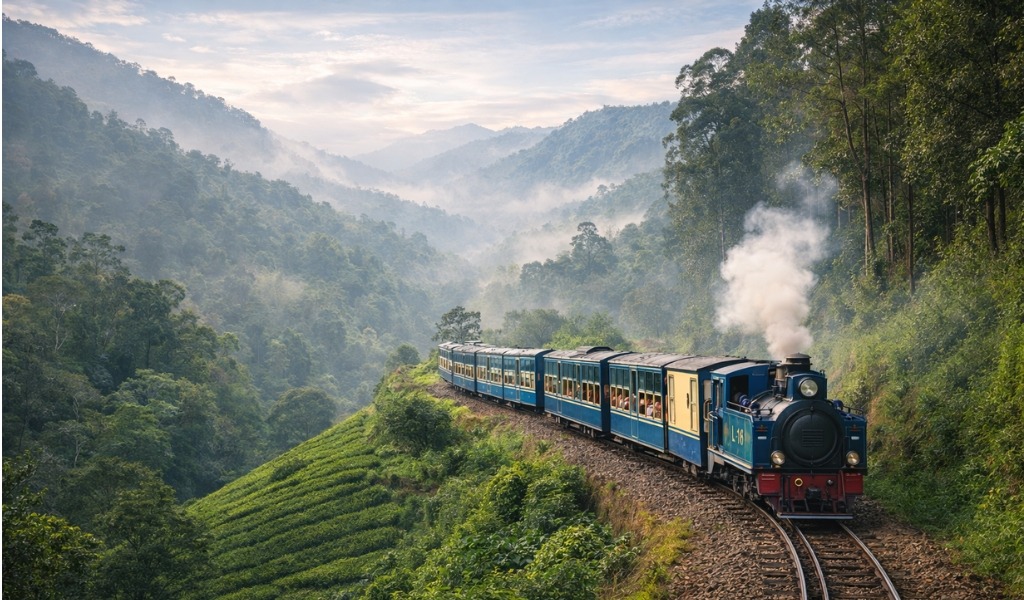 The Nilgiri Mountain Railway is a UNESCO World Heritage site and a major highlight for visitors. Taking the Mettupalayam to Ooty train offers a slow, scenic journey through steep valleys, dark tunnels, and dense forests.
